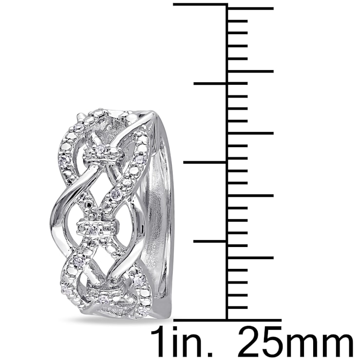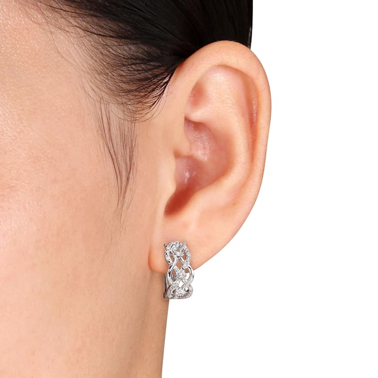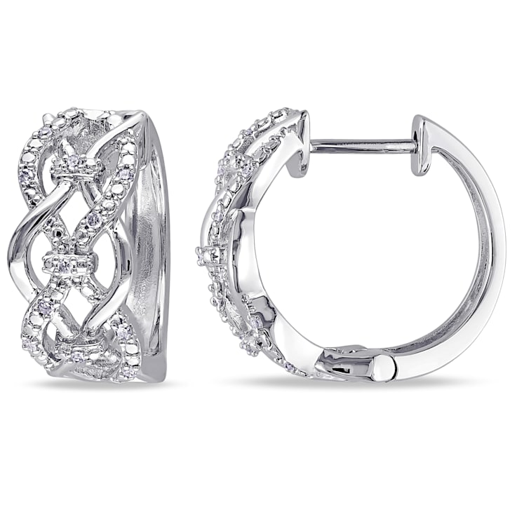Express your love and commitment with these exquisite Diamond Cross-Over Infinity Hoop Earrings. Crafted in sterling silver, these stunning earrings feature 22 round-cut, prong-set white diamond accents (G-H, I2-I3). The earrings are secured with clip-back closures.
